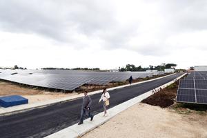 (251112) -- ARTEMISA, 12 noviembre, 2025 (Xinhua) -- Personas caminan por una calle del nuevo parque fotovoltaico con asistencia china en el marco de su inauguración, en la provincia de Artemisa, en el oeste de Cuba, el 12 de noviembre de 2025. Un nuevo parque fotovoltaico con asistencia china fue inaugurado el miércoles en la provincia cubana de Artemisa, a unos 50 km al oeste de La Habana. (Xinhua/Joaquín Hernández) (jh) (ah) (ra) (ce)