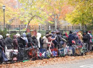 (251112) -- NUEVA YORK, 12 noviembre, 2025 (Xinhua) -- Personas se forman para recibir alimentos gratuitos en una estación de distribución, en Nueva York, Estados Unidos, el 12 de noviembre de 2025. Personas recibieron el miércoles alimentos gratuitos de una estación de distribución del Banco de Alimentos de la ciudad de Nueva York. (Xinhua/Zhang Fengguo) (ah) (ra) (ce)