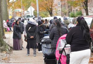 (251112) -- NUEVA YORK, 12 noviembre, 2025 (Xinhua) -- Personas se forman para recibir alimentos gratuitos en una estación de distribución, en Nueva York, Estados Unidos, el 12 de noviembre de 2025. Personas recibieron el miércoles alimentos gratuitos de una estación de distribución del Banco de Alimentos de la ciudad de Nueva York. (Xinhua/Zhang Fengguo) (ah) (ra) (ce)