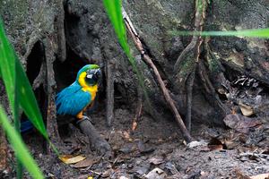 (251113) -- BELEM,13 noviembre, 2025 (Xinhua) -- Un guacamayo azul y amarillo (Ara ararauna) es visto en el Bosque Rodrigues Alves, en Belém, estado de Pará, Brasil, el 13 de noviembre de 2025. (Xinhua/Claudia Martini) (cm) (jg) (da)