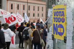 (251113) -- QUITO, 13 noviembre, 2025 (Xinhua) -- Imagen del 12 de noviembre 2025 de manifestantes participando durante una marcha para rechazar la consulta popular y el referendo constitucional convocados por el Gobierno para el próximo 16 de noviembre, en la ciudad de Quito, capital de Ecuador. Más de 13,9 millones de ecuatorianos están convocados a las urnas para pronunciarse en la consulta popular respecto a si están o no de acuerdo en que se convoque e instale una Asamblea Constituyente para elaborar una nueva Constitución. (Xinhua/Ricardo Landeta) (rl) (rtg) (da)