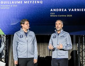(251113) — MILAN, 13 noviembre, 2025 (Xinhua) — Imagen del 12 de noviembre de 2025 de Andrea Varnier (d), director ejecutivo de Milán Cortina 2026, hablando durante un evento de develación de los uniformes oficiales para los voluntarios, los trabajadores del Comité Organizador y los portadores de la antorcha de los Juegos Olímpicos y Paralímpicos de Invierno de Milán Cortina 2026, en Milán, Italia. (Xinhua) (rtg) (da)