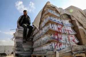 (251113) -- GAZA, 13 noviembre, 2025 (Xinhua) -- Imagen del 13 de noviembre de 2025 de bienes comerciales que entraron a través del cruce de Zikim, en el norte de la Franja de Gaza. Israel dijo el miércoles que ha reabierto el cruce de Zikim para permitir la entrada de camiones de ayuda humanitaria al norte de Gaza. (Xinhua/Rizek Abdeljawad) (rtg) (da)