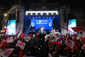CL 22 (251114) -- VALPARAISO, 14 noviembre, 2025 (Xinhua) -- Imagen del 13 de noviembre de 2025 de simpatizantes de la candidata a la Presidencia chilena, la abanderada del oficialismo, Jeannette Jara, asistiendo a su cierre de campaña,en la ciudad de Valparaíso, Chile . (Xinhua/Jorge Villegas) (jv)