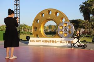 (251116) -- XIAMEN, 16 noviembre, 2025 (Xinhua) -- Un bebé posa para una fotografía en la Avenida del Sueño de los Premios Gallo de Oro y Cien Flores, en Xiamen, en la provincia de Fujian, en el sureste de China, el 16 de noviembre de 2025. La avenida abrió al público el domingo. (Xinhua/Zeng Demeng) (oa) (ah)