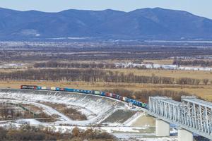 (251116) — HARBIN, 16 noviembre, 2025 (Xinhua) — Vista aérea tomada con un dron el 15 de noviembre de 2025 de un tren de carga China-Europa partiendo desde la Estación de Ferrocarriles del Norte de Tongjiang, cruzando el Puente de Ferrocarril China-Rusia Tongjiang-Nizhneleninskoye. Como parte importante del corredor oriental del servicio de trenes de carga China-Europa, el puerto ferroviario de Tongjiang ha gestionado un total de 273 viajes de trenes de carga China-Europa desde su puesta en marcha en 2022, con más de 14 millones de toneladas de mercancías importadas y exportadas, según datos de China Railway Harbin Group Co., Ltd. (Xinhua/Wu Yunan) (rtg) (da)