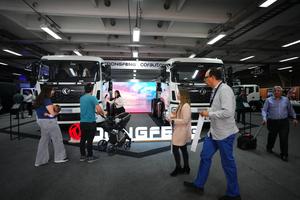 (251116) -- BOGOTA, 16 noviembre, 2025 (Xinhua) -- Imagen del 14 de noviembre de 2025 de personas visitando un estand de vehículos de carga de fabricación china durante el primer día del Salón del Automóvil 2025, en el recinto ferial de Corferias, en Bogotá, Colombia. Los autos eléctricos chinos han potenciado un récord histórico en esta forma de movilidad en Colombia, al registrar en octubre pasado un crecimiento del 93,7 por ciento, el mayor registro de ventas alcanzada en el mercado colombiano, de acuerdo con cifras de organismos comerciales y empresariales del país sudamericano. (Xinhua/Andrés Moreno) (am) (oa) (da)