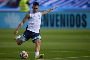 (251114) -- ELCHE, 14 noviembre, 2025 (Xinhua) -- Imagen del 13 de noviembre de 2025 de Lautaro Martínez, de la selección nacional argentina de fútbol, asistiendo a una sesión de entrenamiento en el Estadio Martínez Valero, en Elche, España. (Xinhua/Str) (oa) (da)