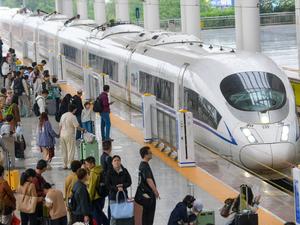 (251007) -- BEIJING, Oct. 7, 2025 (Xinhua) -- Passengers wait to board a train at Luoyang Longmen Railway Station in Luoyang, central China's Henan Province, Oct. 7, 2025. As the National Day and Mid-Autumn Festival holiday is drawing to a close, return travel flows increase across the country. (Photo by Zhang Yixi/Xinhua)