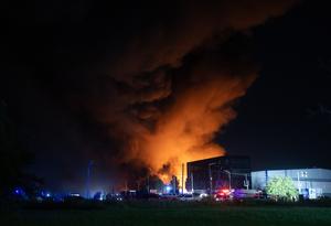 (251115) -- EZEIZA, 15 noviembre, 2025 (Xinhua) -- Un incendio provocado por una explosión es visto en una empresa de productos químicos, en la localidad de Carlos Spegazzini, en el distrito de Ezeiza, Argentina, el 15 de noviembre de 2025. Al menos 20 personas resultaron heridas en Argentina la noche del viernes tras producirse una impresionante explosión en un sector industrial de la localidad de Carlos Spegazzini, distrito de Ezeiza, al sur de la capital, Buenos Aires. (Xinhua/Str) (mz) (oa) (da)