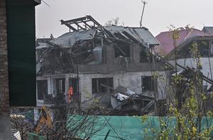 (251115) -- SRINAGAR, 15 noviembre, 2025 (Xinhua) -- Imagen del 15 de noviembre de 2025 del edificio dañado de una estación policial tras una explosión, en Srinagar, capital de verano de Cachemira controlada por India. Al menos nueve personas murieron y otras 32 resultaron heridas después de que una pila de explosivos recuperados explotara dentro de una comisaría en Cachemira controlada por India, informaron medios locales el sábado. (Xinhua/Javed Dar) (jg) (da)