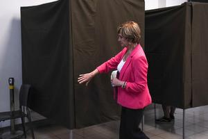 (251116) -- SANTIAGO, 16 noviembre, 2025 (Xinhua) -- Imagen cedida por la Agencia de Noticias de Chile AGENCIA UNO de la candidata a la Presidencia chilena, representante de la derecha tradicional, Evelyn Matthei, llegando a emitir su voto durante las elecciones presidenciales en el Departamento Universitario Obrero Campesino de la Pontificia Universidad Católica de Chile sede Antonio Varas, en la comuna de Providencia, en la ciudad de Santiago, capital de Chile, el 16 de noviembre de 2025. Más de 15,77 millones de personas están convocadas a votar el domingo en las primeras elecciones presidenciales de Chile con participación obligatoria, en una disputa entre candidaturas de izquierda y ultraderecha como favoritas, lo que definirá el rumbo político del país para los próximos cuatro años. (Xinhua/Víctor Huenante/AGENCIA UNO) (rtg) (da)