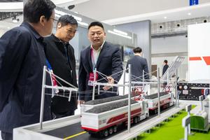 (251117) -- CHANGSHA, 17 noviembre, 2025 (Xinhua) -- Imagen del 7 de noviembre de 2025 de un expositor (3-i) presentando el Sistema de Transporte Automotor Electrificado Zhidao a los visitantes, en Zhuzhou, en la provincia de Hunan, en el centro de China. Este camión inteligente, conocido como Sistema de Transporte Automotor Electrificado Zhidao, se presentó por primera vez en una reciente exposición internacional de transporte ferroviario en la provincia de Hunan, en el centro de China, dando un nuevo impulso a la modernización del sector del transporte por carretera y ofreciendo una solución de movilidad más eficiente, inteligente y respetuosa con el medio ambiente. (Xinhua/Chen Sihan) (oa) (ah) (vf)