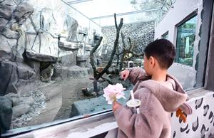 (251115) -- XINING, 15 noviembre, 2025 (Xinhua) -- Un niño toma fotografías de un leopardo de las nieves en el Parque de Vida Silvestre de Xining, en la provincia de Qinghai, en el noroeste de China, el 15 de noviembre de 2025. La casa del leopardo del Parque de Vida Silvestre de Xining reabrió al público tras un mes de renovación. (Xinhua/Qi Zhiyue) (oa) (da)
