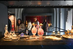 (251116) -- ESTAMBUL, 16 noviembre, 2025 (Xinhua) -- Imagen del 15 de noviembre de 2025 de visitantes observando las exposiciones en el Palacio de Dolmabahce, en Estambul, Turquía. El Palacio de Dolmabahce, situado a orillas del Bósforo, se utilizó en su día como jardín real. El nombre "Dolmabahce" significa literalmente "jardín relleno", en alusión al hecho histórico de que el palacio y sus terrenos se construyeron sobre una antigua bahía del Bósforo que fue rellenada deliberadamente durante el siglo XVII. Desde 1984, el Palacio de Dolmabahce, junto con su mobiliario original, está abierto al público como museo palaciego. (Xinhua/Liu Lei) (oa) (ah)