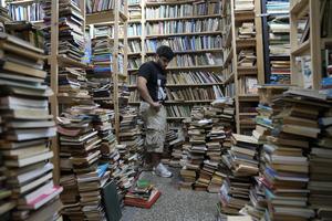 (251115) -- MONTEVIDEO, 15 noviembre, 2025 (Xinhua) -- Imagen del 14 de noviembre de 2025 de un hombre observando libros en el interior de una librería durante la novena edición de la Noche de las Librerías, en Montevideo, capital de Uruguay. (Xinhua/Nicolás Celaya) (nc) (jg) (da)