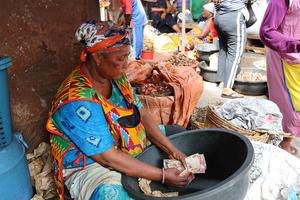 (251119) -- ACCRA, 19 noviembre, 2025 (Xinhua) -- Imagen del 18 de noviembre de 2025 de una comerciante contando billetes de cedi ghanés en un mercado, en Accra, Ghana. El presidente ghanés, John Dramani Mahama, reiteró la determinación de su Gobierno de salvaguardar la independencia del banco central para impulsar la confianza en la economía y garantizar unos fundamentos económicos sólidos. (Xinhua/Seth) (jg) (da) (ce)