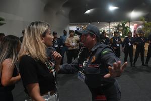 (251120) -- BELEM, 20 noviembre, 2025 (Xinhua) -- Personal de seguridad trabaja en la evacuación de los asistentes tras un incendio en uno de los pabellones de la 30ª Conferencia de las Partes (COP30) de la Convención Marco de las Naciones Unidas sobre el Cambio Climático, en Belém, estado de Pará, Brasil, el 20 de noviembre de 2025. Un fuerte incendio se registró el jueves en uno de los pabellones donde se realiza la COP30 en la ciudad brasileña de Belém, por lo que decenas de personas fueron evacuadas por los Bomberos del estado de Pará a cargo de la seguridad del lugar. (Xinhua/Lucio Tavora) (lt) (ah) (da) (ce)