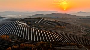 (251120) -- JINAN, 20 noviembre, 2025 (Xinhua) -- Vista aérea tomada con un dron del 14 de noviembre de 2025 de una base fotovoltaica, en Dongsanzhuang del distrito de Mengyin en la ciudad de Linyi, en la provincia de Shandong, en el este de China. En 2020, China anunció que se esforzaría por alcanzar el pico de emisiones de dióxido de carbono antes de 2030 y la neutralidad de carbono antes de 2060. (Xinhua/Gong Maodong) (da) (ra) (ce)