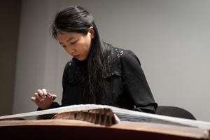 (251121) -- BUENOS AIRES, 21 noviembre, 2025 (Xinhua) -- Imagen del 20 de noviembre de 2025 de la artista del guzheng, Peng Lizhu, realizando una interpretación durante la presentación titulada "A donde nos lleven las cuerdas" celebrada en la sede de la Fundación del Banco Industrial y Comercial de China, en la ciudad de Buenos Aires, Argentina. Un concierto de cuerdas que combinó el sonido milenario de instrumentos tradicionales chinos con lenguajes sonoros contemporáneos cautivó el jueves a decenas de asistentes en la capital argentina. (Xinhua/Martín Zabala) (mz) (jg) (da) (ce)