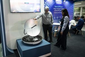 (251120) -- BUENOS AIRES, 20 noviembre, 2025 (Xinhua) -- Personas observan una antena satelital marina exhibida en un estand durante la Feria y Congreso Internacional de la Industria Naval, Logística, Militar y Navegación Recreativa (ESNAV 2025), en el predio ferial Costa Salguero, en la ciudad de Buenos Aires, capital de Argentina, el 20 de noviembre de 2025. El sector marítimo y de defensa sudamericano se dio cita en la capital de Argentina, Buenos Aires, durante dos días en el marco de la ESNAV 2025 realizada en el predio ferial Costa Salguero. (Xinhua/Martín Zabala) (mz) (rtg) (ra) (ce)