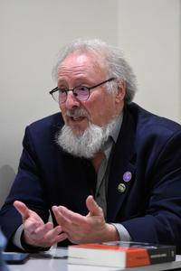 (251121) -- SANTIAGO, 21 noviembre, 2025 (Xinhua) -- Imagen del 13 de octubre de 2025 del investigador estadounidense, Peter Kornbluh, hablando durante una entrevista con la Agencia de Noticias Xinhua, en Santiago, capital de Chile. La Operación Cóndor, un sistema de coordinación represiva entre los regímenes militares del Cono Sur que persiguió y eliminó a miles de personas por motivos políticos, sigue revelando lecciones pendientes, dijo Kornbluh, 50 años después del inicio de dicha campaña de represión. (Xinhua/Jorge Villegas) (jv) (rtg) (ra) (ce)