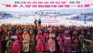 (251122) -- JILIN, 22 noviembre, 2025 (Xinhua) -- Imagen del 21 de noviembre de 2025 de esquiadores vestidos con trajes de la Opera de Pekín posando para una fotografía grupal despúes a un espectáculo temático de esquí en el Complejo Turístico del Lago Songhua de la ciudad de Jilin, en la provincia de Jilin, en el noreste de China. Más de 260 esquiadores vestidos con trajes de la Opera de Pekín esquían juntos 1000 metros para celebrar la nueva temporada de esquí. (Xinhua/Xu Chang) (oa) (da)