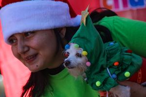 (251123) -- SAN SALVADOR, 23 noviembre, 2025 (Xinhua) -- Una mujer carga a su perro durante un desfile navideño de mascotas en el parque Cuscatlán, en el departamento de San Salvador, El Salvador, el 23 de noviembre de 2025. (Xinhua/Alexander Peña) (ap) (oa) (rtg) (ah) (da)