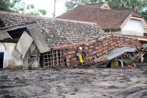 (251121) -- LUMAJANG, 21 noviembre, 2025 (Xinhua) -- Imagen del 20 de noviembre de 2025 de un hombre revisando su vivienda dañada después de la erupción del volcán Semeru, en la aldea de Sapiturang, en la regencia de Lumajang, en Java Oriental, Indonesia. El volcán Semeru de Indonesia entró en erupción el miércoles, lo que llevó a la agencia de vulcanología del país a elevar el nivel de alerta al máximo. (Xinhua/Sahlan Kurniawan) (rtg) (ra) (ce)