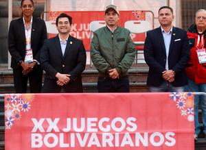(251123) -- LIMA, 23 noviembre, 2025 (Xinhua) -- El presidente peruano, José Jerí (c), asiste al maratón de los XX Juegos Deportivos Bolivarianos Ayacucho-Lima 2025 en la Plaza Mayor de Lima, en Lima, Perú, el 23 de noviembre de 2025. Jerí afirmó el viernes que los XX Juegos Deportivos Bolivarianos Ayacucho-Lima 2025 son un encuentro que "hermana" a los países de la región. (Xinhua/Mariana Bazo) (mb) (oa) (ah)