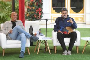 (251121) -- CARACAS, 21 noviembre, 2025 (Xinhua) -- El presidente venezolano, Nicolás Maduro (d), y el ministro de Educación venezolano, Héctor Rodríguez (i), participan durante un acto por el Día del Estudiante Venezolano, en Caracas, Venezuela, el 21 de noviembre de 2025. Los estudiantes venezolanos se movilizaron el viernes en Caracas para celebrar su día y en defensa de la paz y la educación. (Xinhua/Marcos Salgado) (ms) (rtg) (ra) (ce)