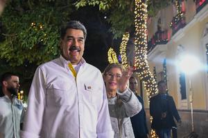 (251123) -- CARACAS, 23 noviembre, 2025 (Xinhua) -- Imagen del 22 de noviembre de 2025 del presidente venezolano, Nicolás Maduro (i-frente) y la primera dama venezolana, Cilia Flores (d-frente), caminando cerca de la Plaza Bolívar previo al estreno de la serie biográfica "Nicolás, de Yare a Miraflores", en Caracas, Venezuela. (Xinhua/Marcos Salgado) (ms) (oa) (ah)