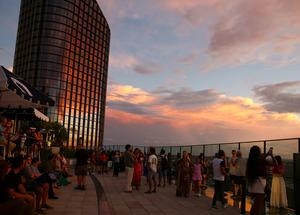 (251124) -- BRISBANE, 24 noviembre, 2025 (Xinhua) -- Imagen del 23 de noviembre de 2025 de personas disfrutando del atardecer en el Sky Deck, en Brisbane, Queensland, Australia. (Xinhua/Ma Ping) (oa) (ah) (ce)