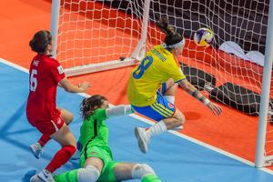 (251122) -- CIUDAD DE PASIG, 22 noviembre, 2025 (Xinhua) -- Angely Camargo (d), de Colombia, realiza una anotación ante la guardameta Lea Palacio-Tellier (c), y Shayla He (i), de Canadá, durante el partido entre Colombia y Canadá en la Copa Mundial Femenina de Futsal de la FIFA 2025, en la Ciudad de Pasig, Filipinas, el 22 de noviembre de 2025. (Xinhua/Rouelle Umali) (rtg) (da)