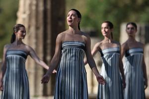 (251124) -- ANTIGUA OLIMPIA, 24 noviembre, 2025 (Xinhua) -- La actriz, Mary Mina, interpreta el papel de la antigua Alta Sacerdotisa griega mientras participa en el ensayo con vestuario de la ceremonia de encendido de la llama Olímpica para los Juegos Olímpicos de Invierno Milán Cortina 2026, en la Antigua Olimpia, Grecia, el 24 de noviembre de 2025. (Xinhua/Li Jing) (rtg) (ah) (ce)