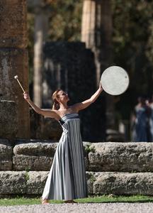 (251124) -- ANTIGUA OLIMPIA, 24 noviembre, 2025 (Xinhua) -- Una actriz interpreta el papel de antigua sacerdotisa mientras participa en el ensayo con vestuario de la ceremonia de encendido de la llama Olímpica para los Juegos Olímpicos de Invierno Milán Cortina 2026, en la Antigua Olimpia, Grecia, el 24 de noviembre de 2025. (Xinhua/Li Jing) (rtg) (ah) (ce)