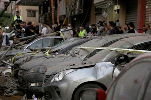(251124) -- BEIRUT, 24 noviembre, 2025 (Xinhua) -- Imagen del 23 de noviembre de 2025 de vehículos dañados en la escena de un ataque aéreo israelí, en Haret Hreik, en el suburbio del sur de Beirut, Líbano. Al menos cinco personas murieron y otras 25 resultaron heridas el domingo en un ataque aéreo israelí contra un apartamento residencial en Haret Hreik, suburbio del sur de Beirut, informó el Ministerio de Salud libanés. (Xinhua/Bilal Jawich) (oa) (ah) (ce)