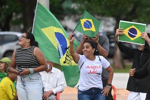 (251125) -- BRASILIA, 25 noviembre, 2025 (Xinhua) -- Simpatizantes del expresidente brasileño, Jair Bolsonaro, se manifiestan frente a la Superintendencia de la Policía Federal, donde se encuentra detenido, en Brasilia, Brasil, el 25 de noviembre de 2025. El Supremo Tribunal Federal de Brasil declaró el martes que el proceso del expresidente Jair Bolsonaro (2019-2022) por tentativa de golpe de Estado es cosa juzgada, por lo que puede iniciar el cumplimiento de sus penas en prisión. (Xinhua/Lucio Tavora) (lt) (oa) (ah) (ce)