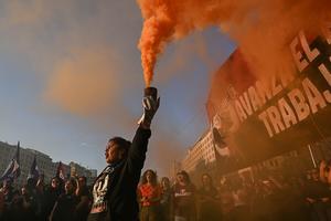 (251126) -- SANTIAGO, 26 noviembre, 2025 (Xinhua) -- Imagen del 25 de noviembre 2025 de una mujer sosteniendo una bengala de humo durante una marcha en el marco del Día Internacional de la Eliminación de la Violencia contra la Mujer, en Santiago, capital de Chile. (Xinhua/Jorge Villegas) (jv) (jg) (da) (ce)