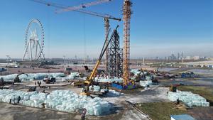 (251125) -- HARBIN, 25 noviembre, 2025 (Xinhua) -- Vista aérea tomada con un dron el 25 de noviembre de 2025 del sitio de construcción del Mundo de Hielo y Nieve de Harbin, en Harbin, en la provincia de Heilongjiang, en el noreste de China. La 27ª edición del Mundo de Hielo y Nieve de Harbin, un reconocido parque temático estacional en Harbin, comenzó oficialmente su construcción el martes. (Xinhua/Liu Yang) (jg) (ra) (vf)