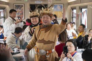 (251126) -- HARBIN, 26 noviembre, 2025 (Xinhua) -- Artistas del grupo étnico oroqen realizan una presentación para los pasajeros a bordo del Tren Y783, el 26 de noviembre de 2025. El Tren Y783, un tren turístico con temática de hielo y nieve, fue lanzado en la Estación del Ferrocarril de Harbin y comenzó el miércoles un viaje de seis días. El tren muestra el encanto del noreste de China a través de decoraciones temáticas, servicios de guía turístico y actividades interactivas, en un esfuerzo para promocionar el turismo invernal e inyectar nueva vitalidad a la economía del hielo y la nieve. (Xinhua/Zhang Tao) (ah) (ra) (vf)