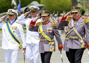 (251126) — QUITO, 26 noviembre, 2025 (Xinhua) — El general Henry Delgado (c), nuevo jefe del Comando Conjunto de las Fuerzas Armadas, reacciona durante una ceremonia de posesión del nuevo alto mando de las Fuerzas Armadas celebrada en la Escuela Superior Militar “Eloy Alfaro”, en el norte de Quito, capital de Ecuador, el 26 de noviembre de 2025. Noboa oficializó el miércoles los cambios en la cúpula militar con la posesión del nuevo alto mando de las Fuerzas Armadas en una ceremonia en la que ratificó su respaldo a la institución en la lucha contra el crimen organizado, que afecta al país. (Xinhua/Ricardo Landeta) (rl) (ah) (ra) (vf)