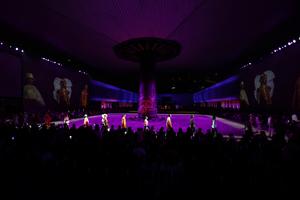 (251126) -- CIUDAD DE MEXICO, 26 noviembre, 2025 (Xinhua) -- Imagen del 25 de noviembre de 2025 de modelos presentando creaciones textiles en una pasarela durante la inauguración de Original CDMX Encuentro de Arte Textil Mexicano 2025 en el Complejo Cultural Los Pinos, en la Ciudad de México, capital de México. (Xinhua/Francisco Cañedo) (fc) (jg) (da) (vf)