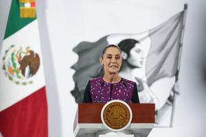 (251125) -- CIUDAD DE MEXICO, 25 noviembre, 2025 (Xinhua) -- La presidenta mexicana, Claudia Sheinbaum, habla durante su conferencia de prensa matutina, en Palacio Nacional, en la Ciudad de México, capital de México, el 25 de noviembre de 2025. El Gobierno de México presentó el martes un plan de acción que busca erradicar la violencia hacia las mujeres y fomentar la igualdad de género en todos los ámbitos sociales, en el marco del Día Internacional de la Eliminación de la Violencia contra las Mujeres este 25 de noviembre. (Xinhua/Francisco Cañedo) (fc) (jg) (ra) (vf)