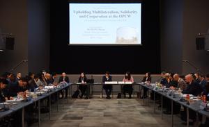 (251125) -- LA HAYA, 25 noviembre, 2025 (Xinhua) -- Imagen del 24 de noviembre de 2025 de un evento paralelo organizado por la delegación china en la 30ª sesión de la Conferencia de los Estados Partes de la Convención sobre Armas Químicas (CSP-30), en La Haya, Países Bajos. La CSP-30 se inauguró aquí el lunes. China apela a todos los Estados que forman parte de la Organización para la Prohibición de las Armas Químicas para que impulsen el verdadero multilateralismo y fortalezcan la solidaridad y la cooperación. (Xinhua) (jg) (ra) (vf)