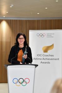 (251125) -- LAUSANA, 25 noviembre, 2025 (Xinhua) -- Imagen del 24 de noviembre de 2025 de la entrenadora china de voleibol, Lang Ping, hablando después de recibir el Premio del Comité Olímpico Internacional (COI) para Entrenadores por su Trayectoria 2025, en la Casa Olímpica, en Lausana, Suiza. El COI honró el lunes a la entrenadora china de voleibol, Lang Ping, y al entrenador cubano de lucha, Raúl de Jesús Trujillo Díaz con el Premio del COI para Entrenadores por su Trayectoria 2025 en la Casa Olímpica aquí. (Xinhua/Lian Yi) (oa) (ah) (ce)