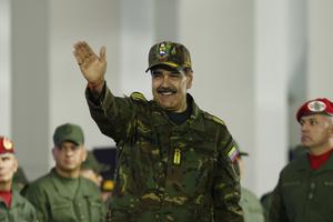 (251126) -- CARACAS, 26 noviembre, 2025 (Xinhua) -- Imagen del 25 de noviembre de 2025 del presidente venezolano, Nicolás Maduro (frente), sonriendo durante la Gran Marcha de las Banderas y de la Espada Bicentenaria, en el Paseo Los Próceres, en Caracas, Venezuela. Maduro llamó el martes al pueblo venezolano a responder con firmeza ante lo que calificó como un momento "decisivo" marcado por el incremento de las amenazas militares de Estados Unidos y su inusual despliegue bélico en aguas de El Caribe, cercanas al país. (Xinhua/Str) (ms) (ah) (ra) (ce)