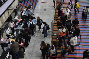 (251125) -- LA GUAIRA, 25 noviembre, 2025 (Xinhua) -- Personas se forman para realizar sus trámites de abordaje en el Aeropuerto Internacional Simón Bolívar, en Maiquetía, estado de La Guaira, Venezuela, el 25 de noviembre de 2025. Diversas aerolíneas que operan en Venezuela informaron el domingo que sus operaciones continúan con normalidad, luego de que el gobierno de Estados Unidos emitiera el viernes una alerta de vuelo para el espacio aéreo venezolano. (Xinhua/Marcos Salgado) (ms) (vf) (ce)