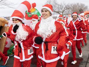 (251130) -- HAMILTON, 30 noviembre, 2025 (Xinhua) -- Imagen del 29 de noviembre de 2025 de personas vestidas como Santa Claus participando en la Carrera de Santa 2025, en Hamilton, Ontario, Canadá. Cientos de participantes acudieron al evento anual que tuvo lugar el sábado de este año. (Xinhua/Zou Zheng) (oa) (ah)