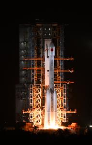 (251130) -- WENCHANG, 30 noviembre, 2025 (Xinhua) -- Un cohete portador Gran Marcha-7 modificado transportando el satélite Shijian-28 despega desde el Sitio de Lanzamiento de Naves Espaciales de Wenchang, en la provincia de Hainan, en el sur de China, el 30 de noviembre de 2025. China lanzó el domingo un nuevo satélite desde el Sitio de Lanzamiento de Naves Espaciales de Wenchang en la provincia insular de Hainan, en el sur del país. El satélite Shijian-28 fue lanzado a las 20:20 (hora de Beijing) a bordo de un cohete portador Gran Marcha-7 modificado. Entró con éxito en su órbita preestablecida. (Xinhua/Yang Guanyu) (rtg) (da)